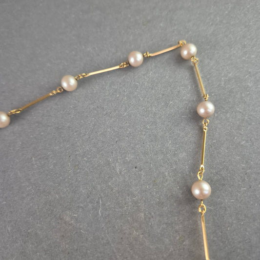 Feine Perlen Halskette mit goldfarbenen Stäben – Zarte Vintage-Eleganz