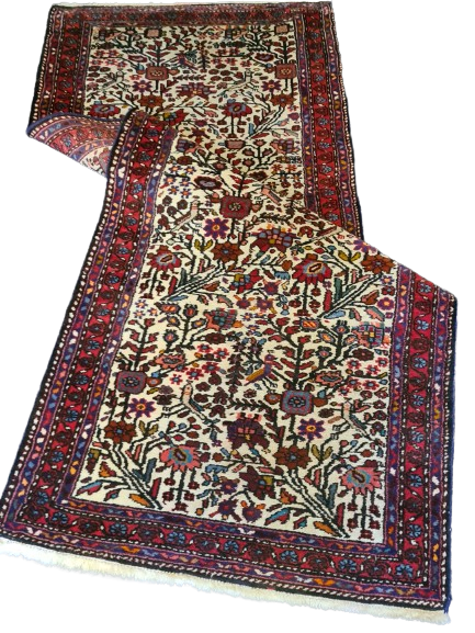 Feiner Handgeknüpfter Moud-Teppich Läufer – Orientteppich 390x82cm