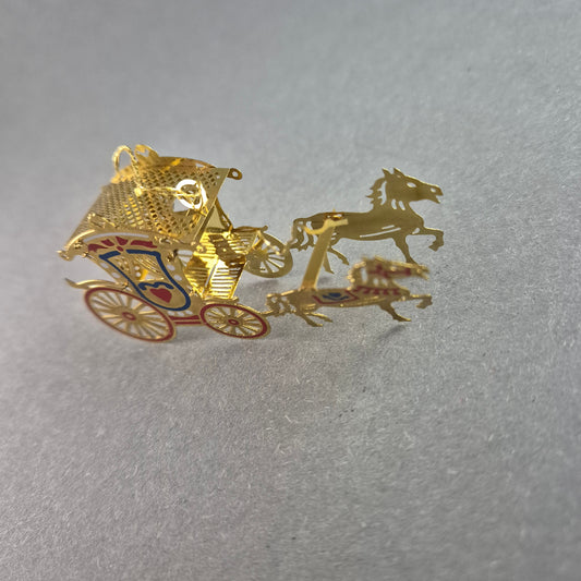Filigrane Miniatur-Kutsche – Goldfarbene Verzierung mit Pferdegespann