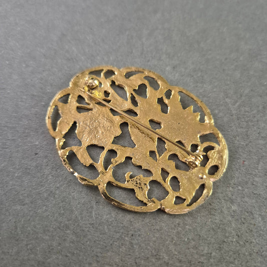 Filigrane Goldbrosche mit floralen Motiven – Eleganz im Vintage-Stil