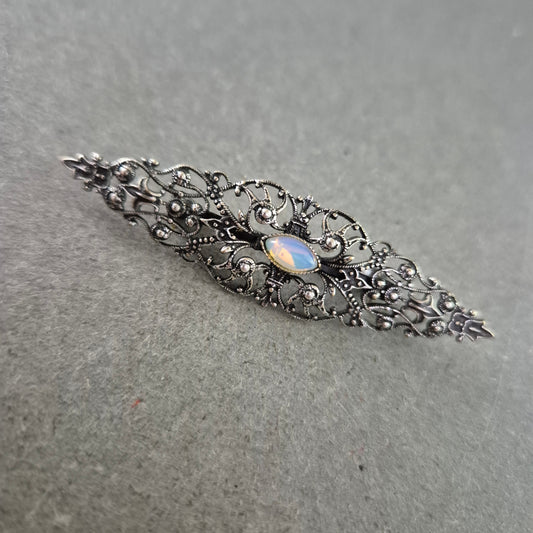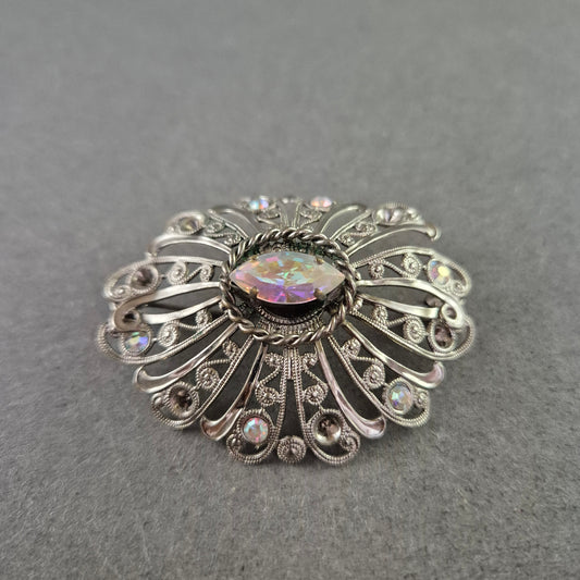 Filigrane Vintage Brosche Silberfarben mit Opal Optik