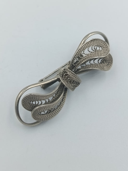 Filigrane Silberbrosche in Schleifenform