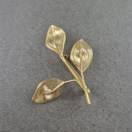 Filigrane Vintage-Brosche mit Blattmotiv – Handgewickelter Look