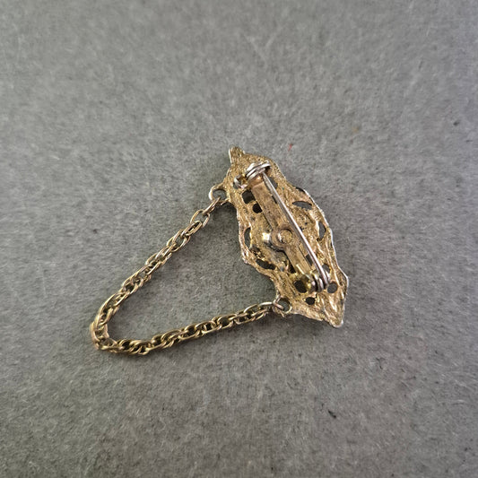 Filigrane Vintage-Brosche in Goldoptik mit Strassakzenten