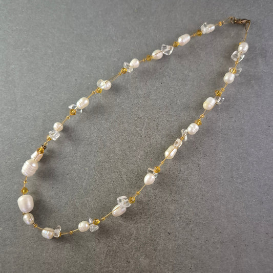 Filigrane Perlen Halskette mit Glasperlen – Zartes Design in Gold und Weiß