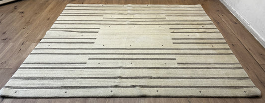 Gabbeh Teppich Schurwolle mit Streifenmuster in Naturfarben