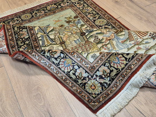 Ghom Teppich reine Seide figürliche Darstellung feine Knüpfung