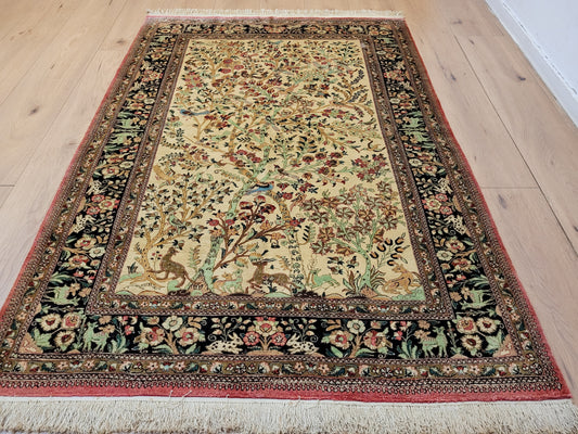 Ghom Teppich Seide auf Seide fein Gartenmotiv Jagdszenen