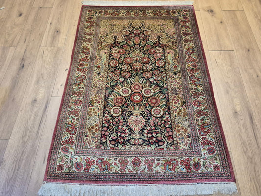 Ghom Teppich Seide auf Seide fein Vase mit Blumenornamenten