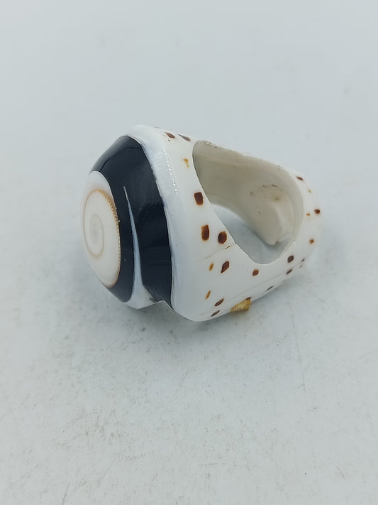 Großer Ring mit natürlicher Schneckenoptik in Schwarz Weiß mit einzigartigem Muster