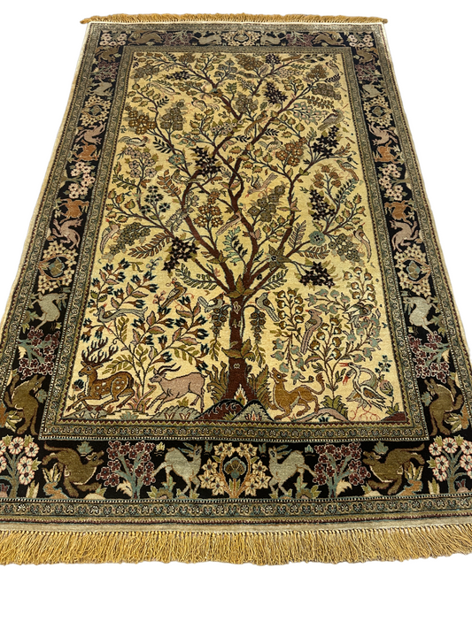 Handgeknüpfter Perser-Orientteppich Ghom Lebensbaum Seide 180x105 cm