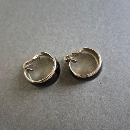 Klassische schwarze Clip-Ohrringe mit silberfarbenem Rand