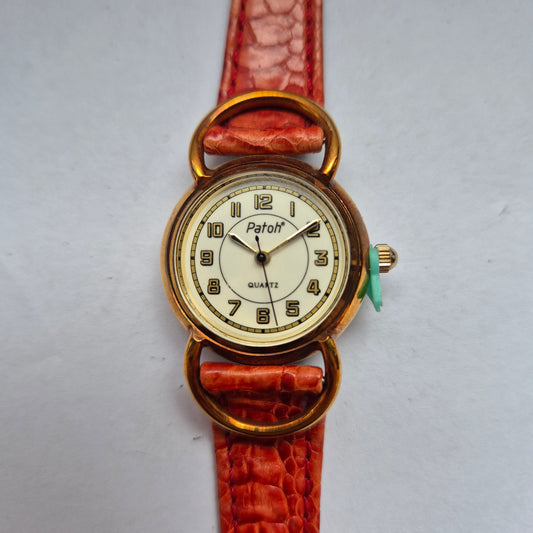 Kreative Patoh Damenarmbanduhr – Verspieltes Design mit rotem Lederarmband