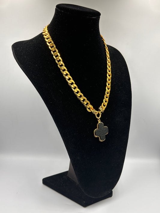 Kubanische Panzerkette mit Vierblättrigem Kleeblatt-Anhänger, vergoldet
