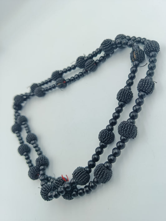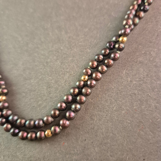 Lange schwarze Perlenkette mit goldenen Akzenten – Eleganter Look