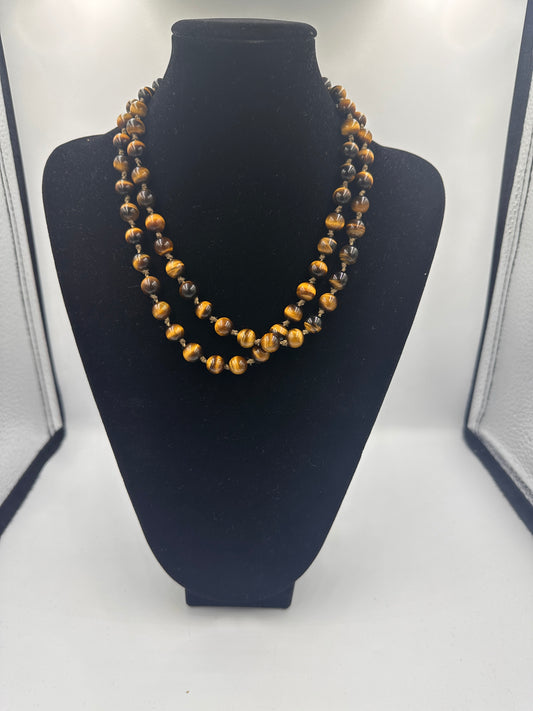 Lange Tigeraugenstein Perlenkette mit Goldfarbenem Verschluss