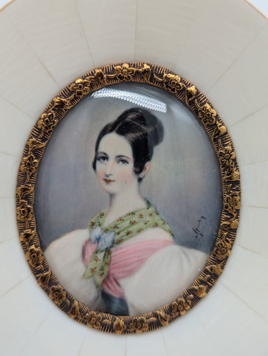 Lupenmalerei Miniaturmalerei Adlige Dame feine Porträt Miniatur im Rahmen