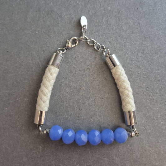 Modernes Armband mit blauen Perlen & Textilband – Frischer, urbaner Look
