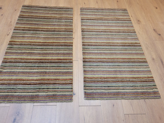 Moderner Streifenteppich – Set aus 2 Stück, handgeknüpft aus Wolle Gabbeh