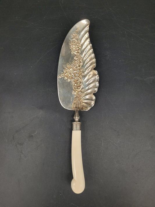 Antiker 925er Sterling Silber Tortenheber mit Blumenrelief aus England