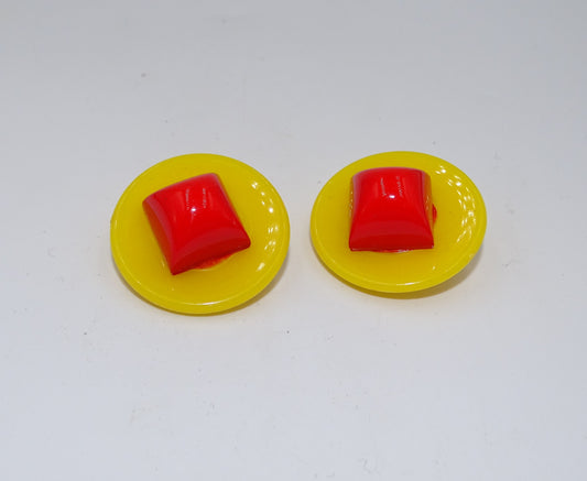 Ohrclips Ohrringe Rund Acryl Kunststoff in Gelb und Rot