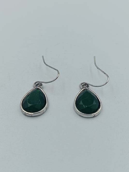 Ohrhänger mit grünen Tropfen-Steinen in Silberoptik