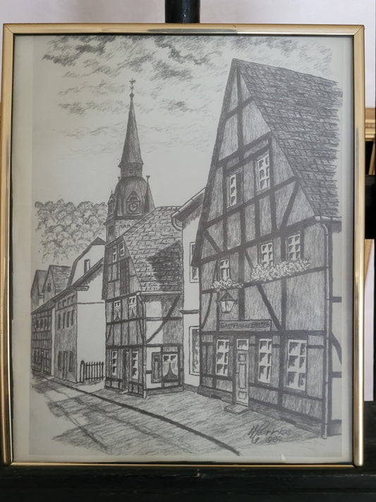 Print nach Kohlezeichnung, Hohenlimburg Altstadt Hagen
