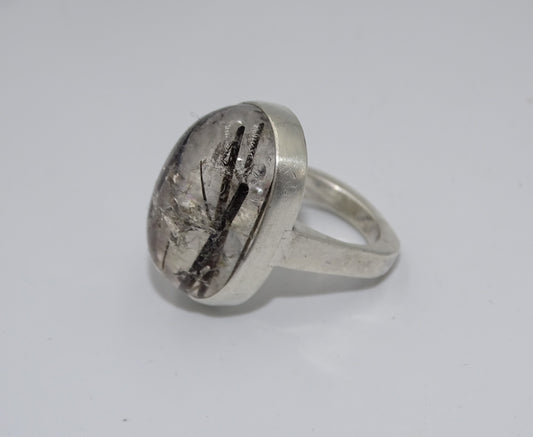 Ring aus 925er Silber mit Turmalin-Quarz - Oval, Größe 51