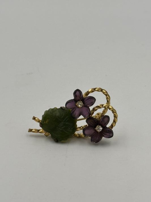 Veilchen Brosche mit Amethyst und Nephrit-Jade, verziert mit Zirkonia-Steinen