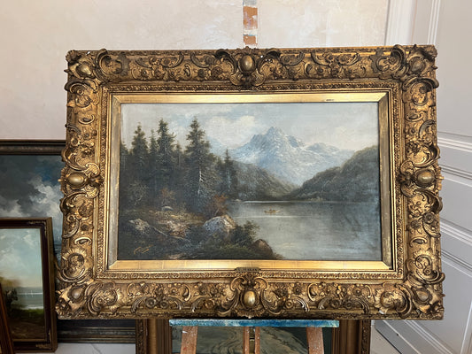 V. Maran (XX) Ölgemälde Friedliche Seelandschaft mit Angler 84x115cm