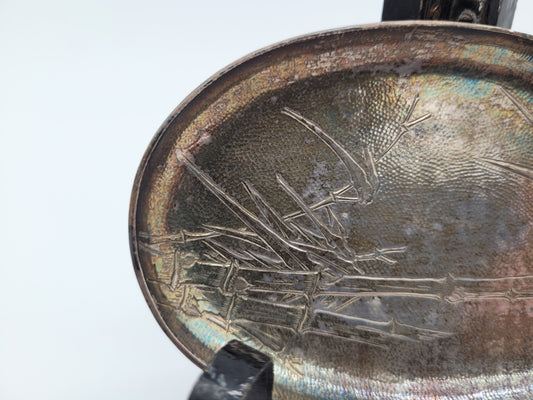 Versilberte Schale Platte mit Bambus Motiv Asiatika Dekorativ