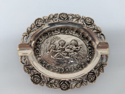 Versilberter Aschenbecher mit Puttenmotiven und reichem Dekor