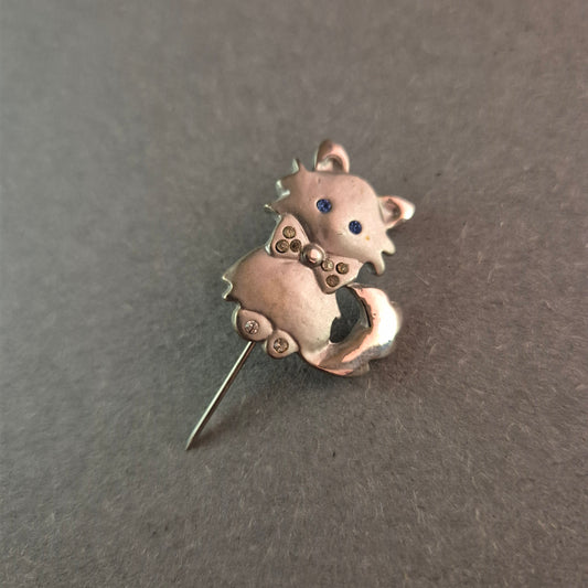 Verspielte Katzen-Anstecknadel – Silberoptik mit funkelnden Details