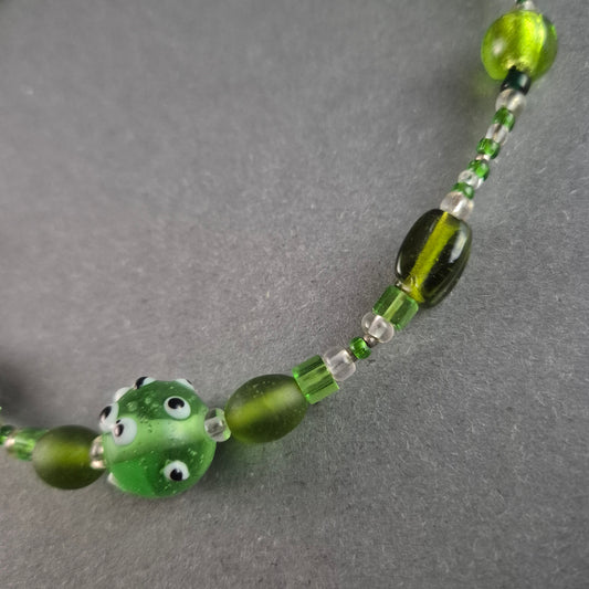Verspielte Glasperlenkette in Grüntönen – Handgefertigtes Unikat