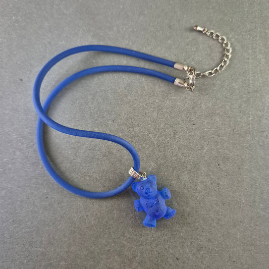 Verspielte Kinder-Halskette mit Bärchen-Anhänger – Blaues Gummiband