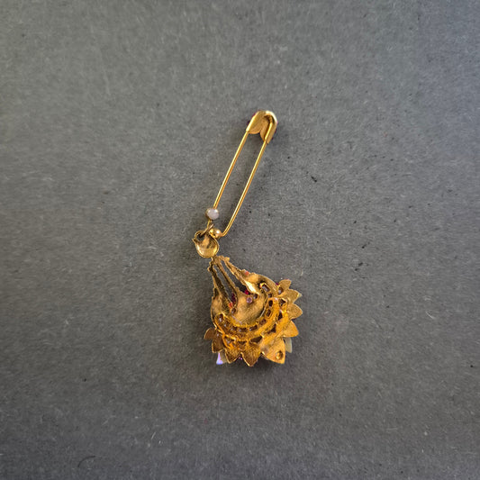 Verspielter Vintage-Anhänger mit Blattmotiv und Strass – Goldfarbenes Unikat