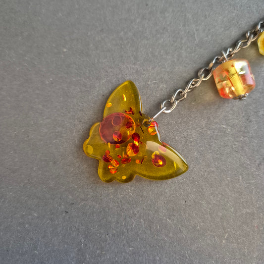 Verspielter Taschenanhänger mit bunten Acryl-Perlen und Schmetterling