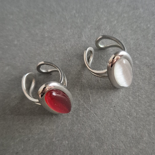 Verstellbare Ringe mit Katzenaugeneffekt – Zweier-Set in Rot & Weiß
