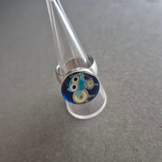 Verspielter Damenring mit Eulenmotiv – Farbiger Hingucker im Pop-Art-Stil