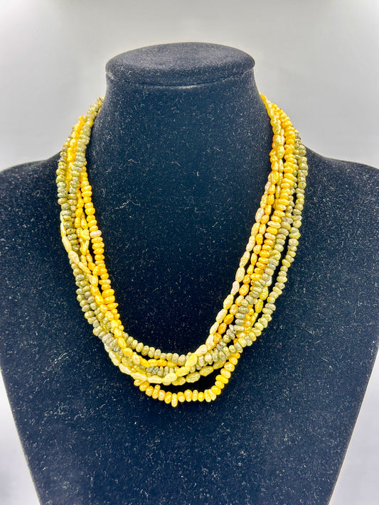 Vintage 6-strang Reis Perlenkette Gelb Grün mit Goldfarbenem Verschluss