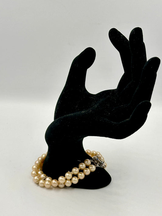 Vintage 2-Strang Reis Perlen Armband mit Silberfarbenem Verschluss