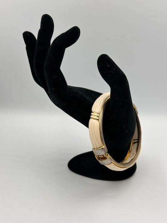 Vintage 1970er Jahre Cremeweiß Zelluloid Armreif mit goldfarbenen Akzenten