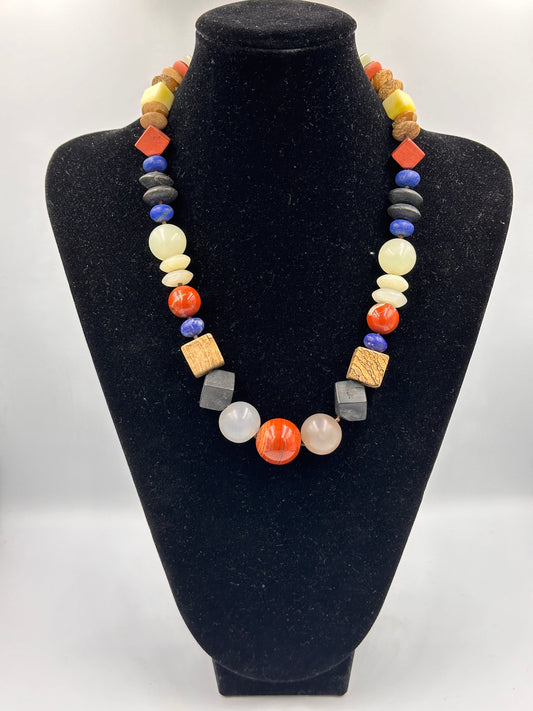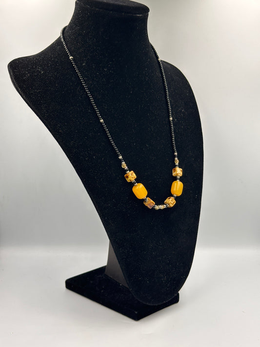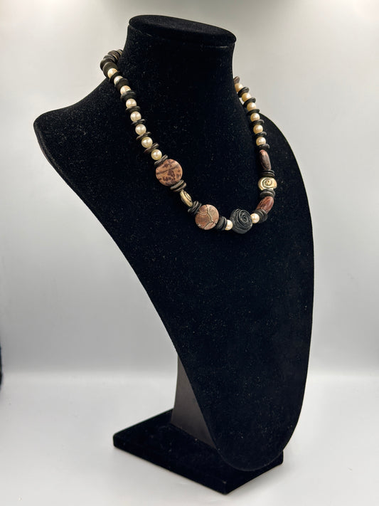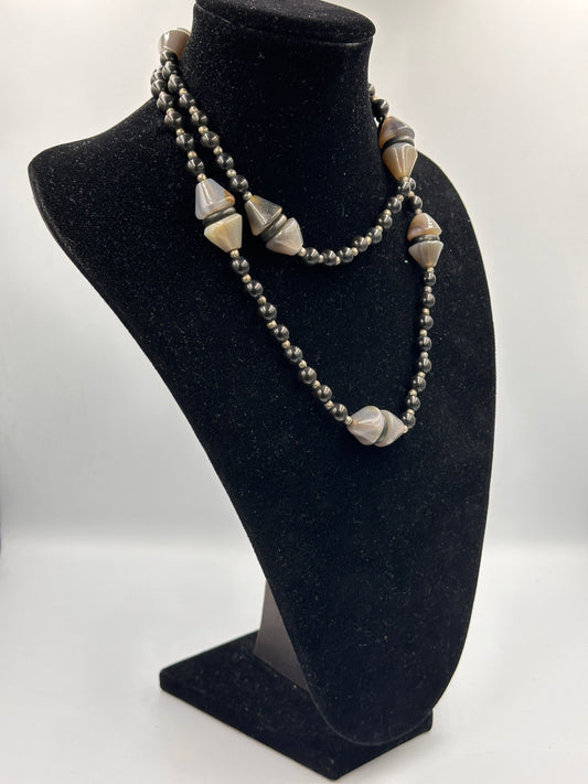 Vintage Afrika Perlenkette mit Onyx und Marmor