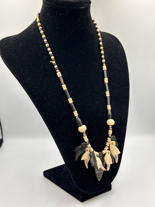 Vintage Afrika Kette Schwarz-Weiß Collier mit Vogelanhängern