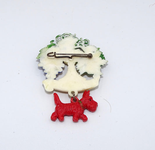 Vintage Art Déco Bakelit Brosche, roter Hund und Trauben