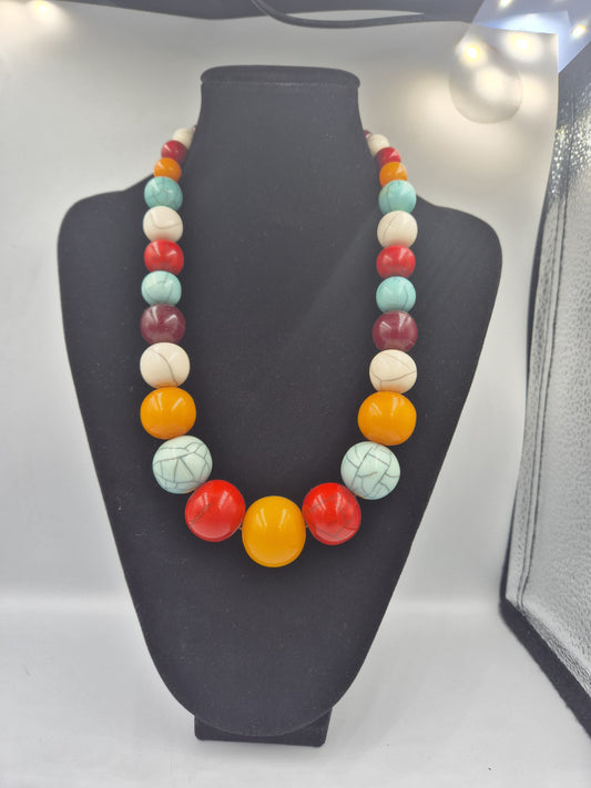 Vintage Artdéco Halskette in Türkis, Blau, Rot und Gelb - Multicolor Collier