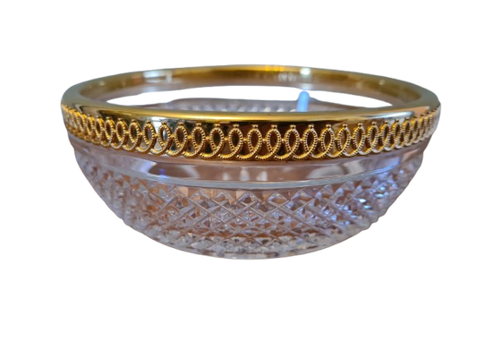 Vintage Baccarat Kristallglas Schale Diamantspitze Gold Glas 16x7cm