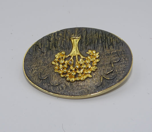 Vintage Brosche Landschaft – Oval Metall mit Ätzmotiv
