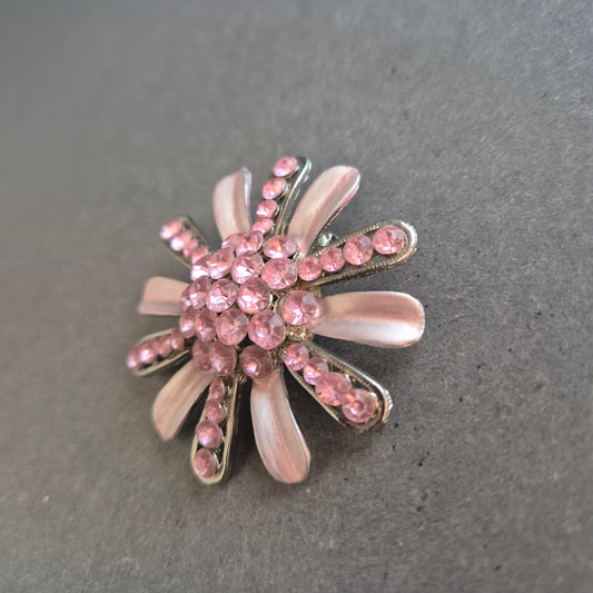 Vintage Brosche in Blumenform mit rosa Strass – Femininer Retro-Charme