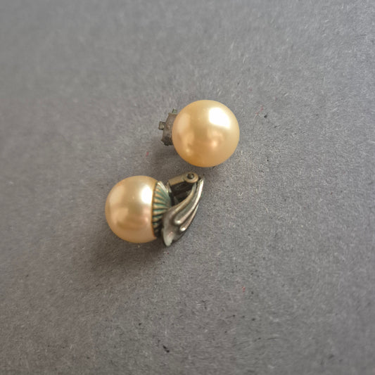 Vintage Clip-Ohrringe mit cremefarbenen Perlen – Klassischer Retro-Stil